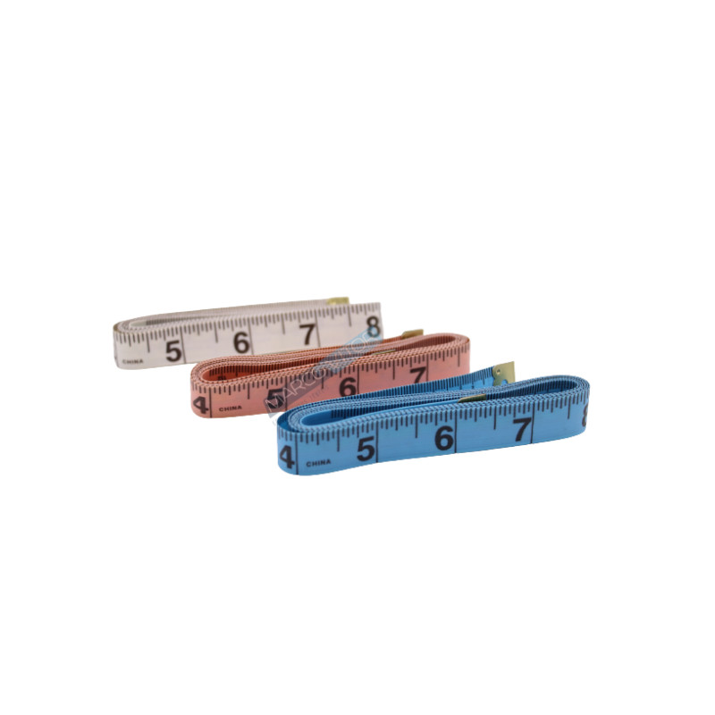 Fita métrica standard com 1.5metros de comprimento. De um lado métrica em centímetros do outro em polegadas.